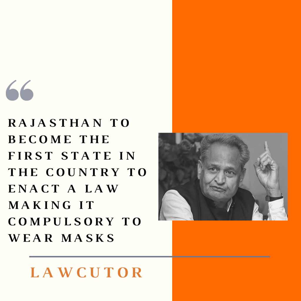 Tweeting about this Chief Minister Ashok Gehlot said that the law will be enacted on Monday, describing mask as a “vaccine” to protect against coronavirus.