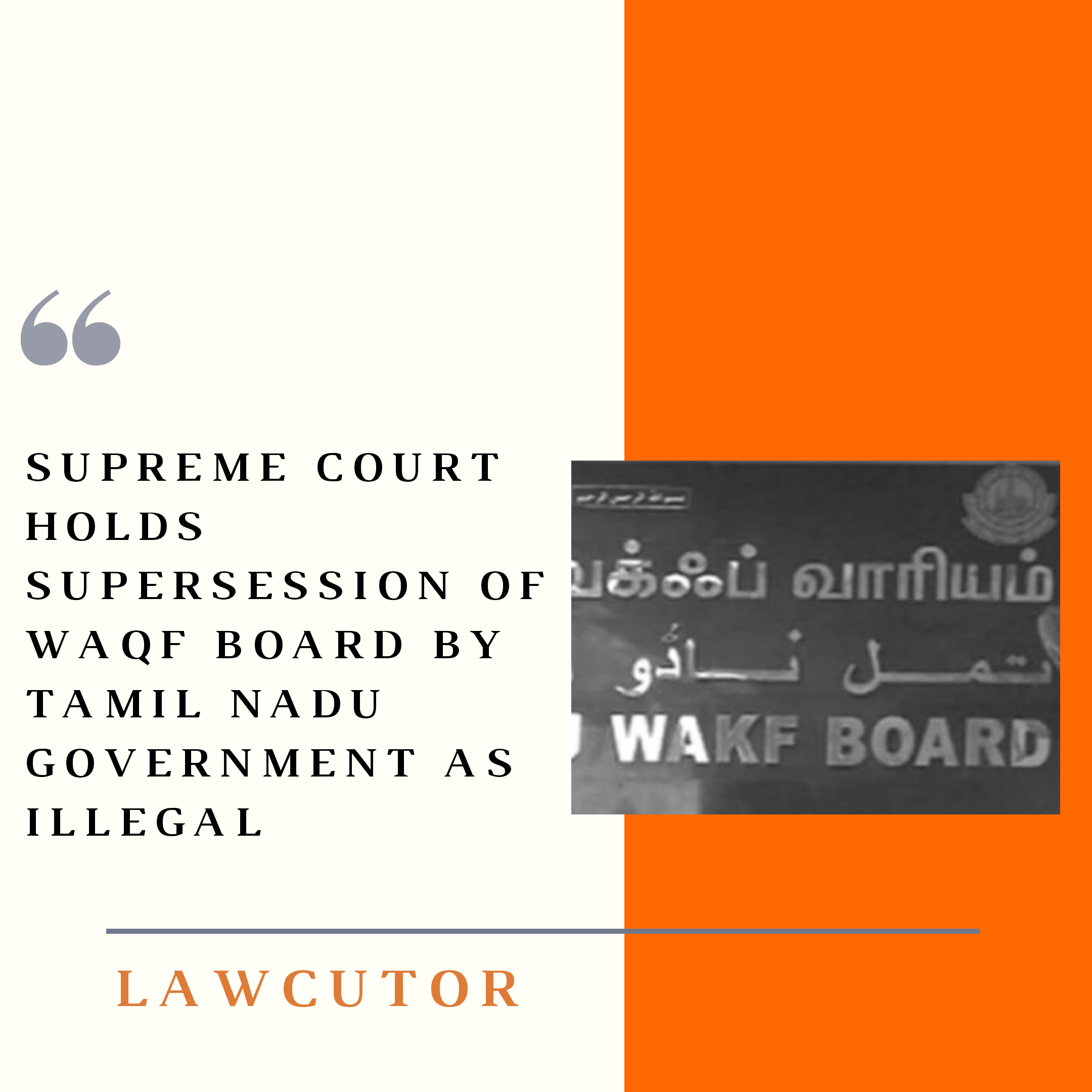 A Supreme Court bench comprising Justices Ashok Bhushan, R. Subhash Reddy and MR Shah in the case of State of Tamil Nadu vs. K. FAZLUR RAHMAN [CA NOS.36033605 Of 2020 ] has upheld the Madras High Court’s decision stating that the supersession of Tamil Nadu Wakf Board by the state government was illegal.