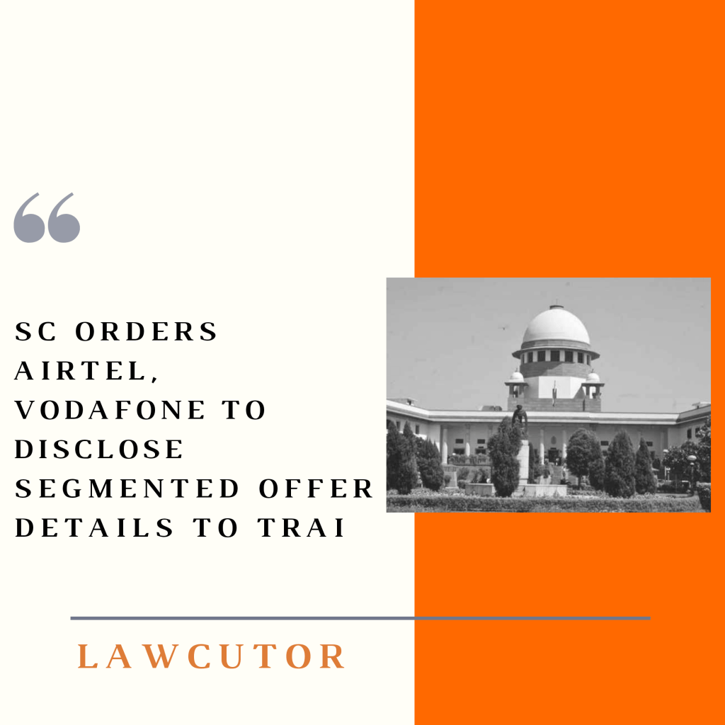 A three judge bench of Chief Justices SA Bobde, A S Bopanna and V S Subramaniam has ordered telecom companies Airtel and Vodafone to disclose details on their offers to the Telecom Regulatory Authority of India (TRAI) while hearing an appeal against an order passed by the Telecom Disputes Settlement and AppellateTribunal. The information shall be kept discreet and shall not be disclosed to fellow competitors.