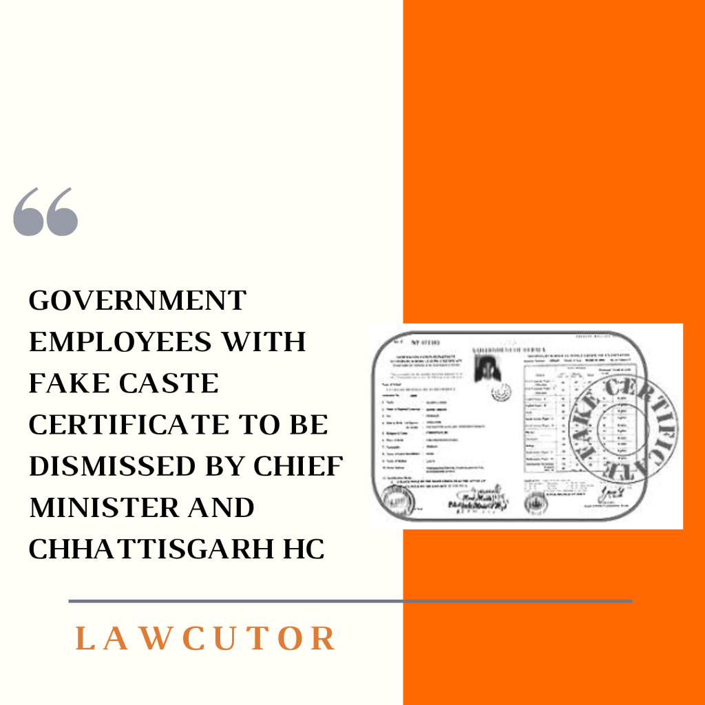 Government servants holding fake caste certificates will be terminated from service. Chief Minister Bhupesh Baghel has instructed to dismiss all government servants holding fake or false caste certificates immediately from service by 13th November, 2020.