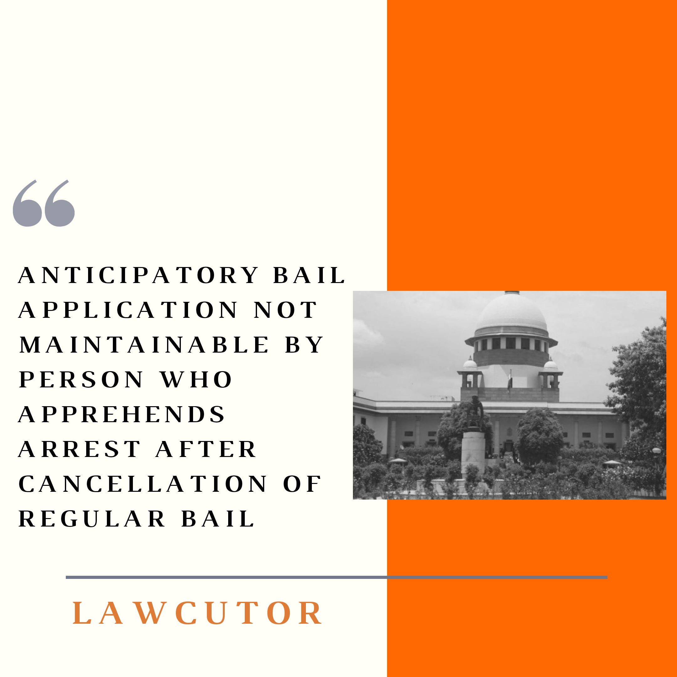 has held that an anticipatory bail application cannot be filed by a person who apprehends arrest after the cancellation of the regular bail held by supreme court.