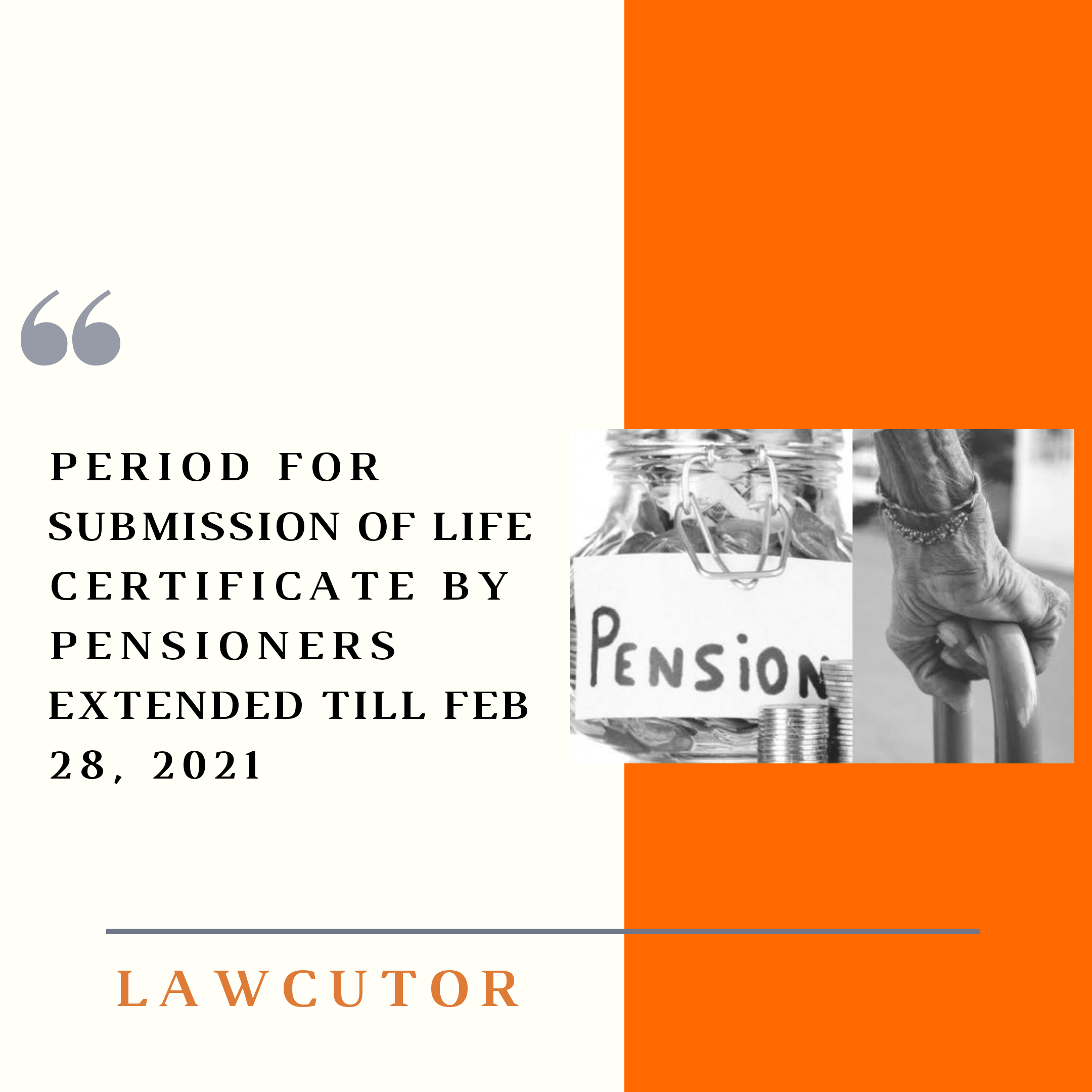 In the month of September 2020, the Ministry of Personnel, Public Grievances and Pensions issued order asking the pensioners to submit the Life Certificate from 1st November, 2020 to 31st December, 2020.