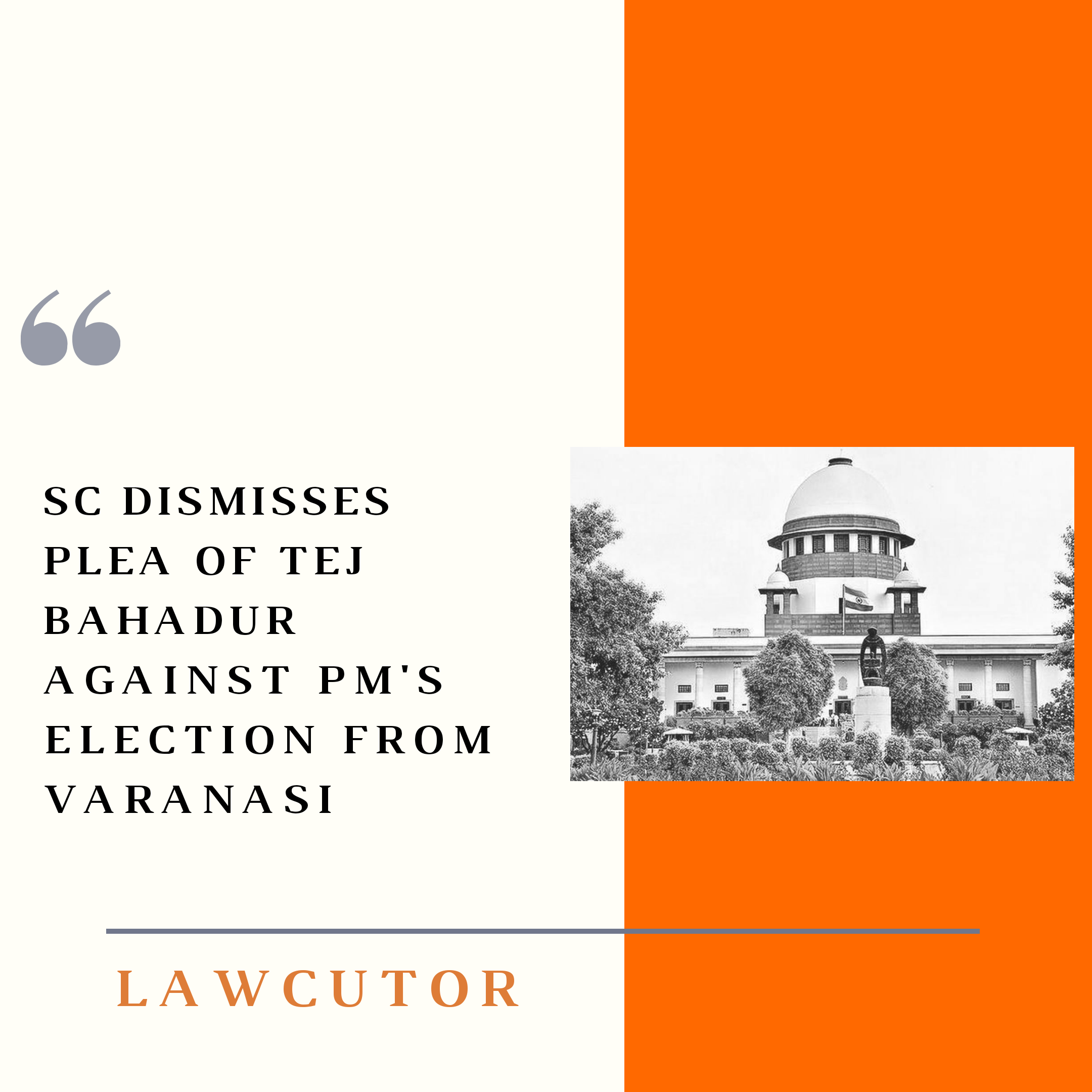 A plea was filed by Tej Bahadur, an ex-border Security Force Constable challenging the last year election of PM Narendra Modi in the Lok Sabha for the Varanasi Constituency. This plea was rejected by the three Judge bench.