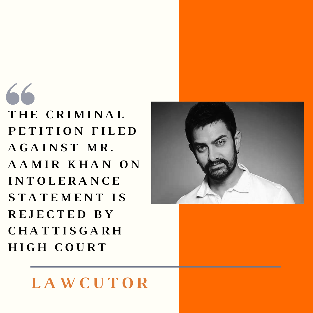 Mr. Aamir Khan had made a statement in a television show that his wife Kiran had said that they should consider leaving this country. Deepak Divan of Raipur had filed a complaint in the lower court against the statement, which was earlier dismissed. Thereafter, Deepak Divan filed a review petition which was also got dismissed by the Sessions Court of Raipur. Since the review petition was also rejected, Divan further approached the high court of Chhattisgarh through advocate Amikant Tiwari.
