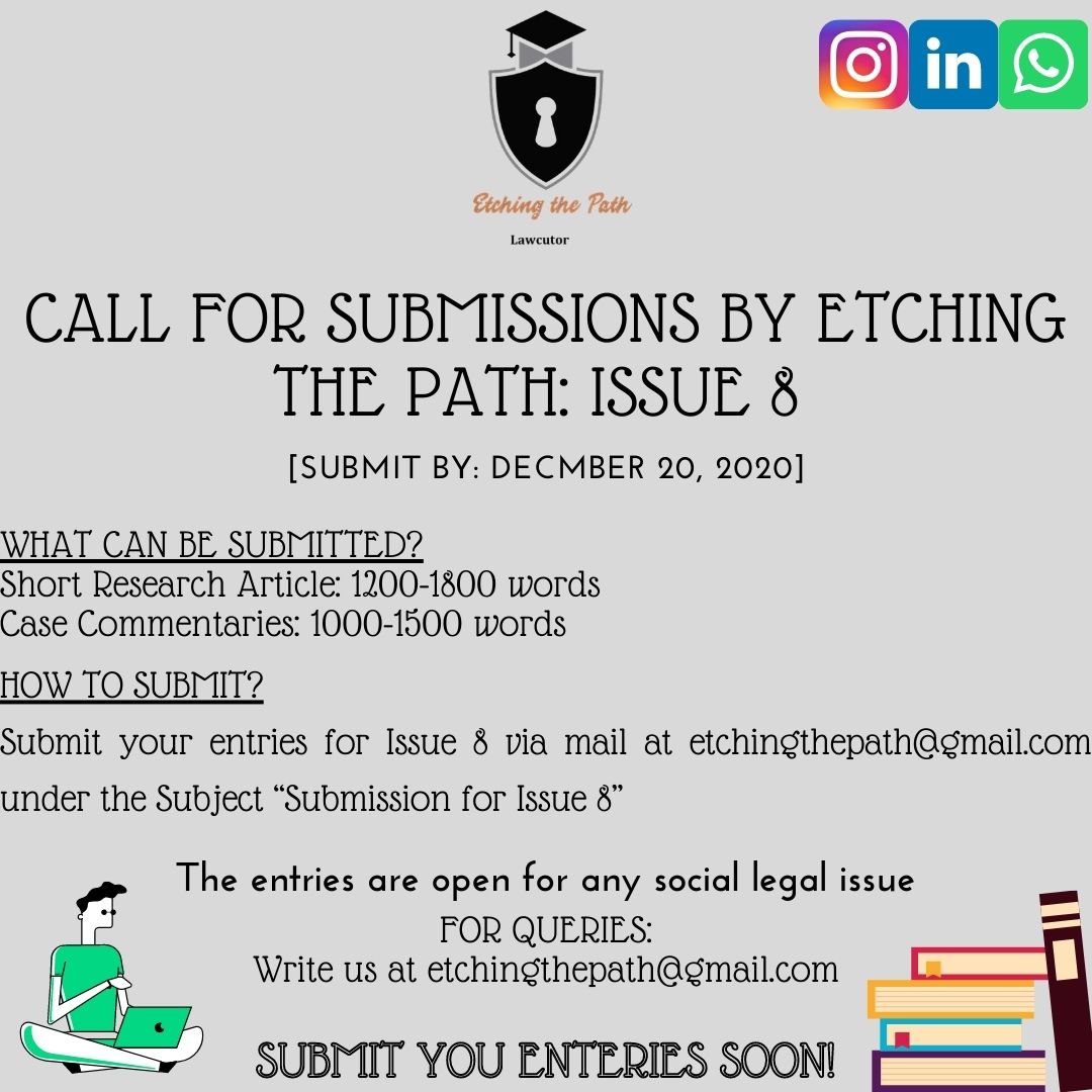 - Selected Submissions shall be published in Lawcutorās E-magazine Etching the Path, Issue No. 8