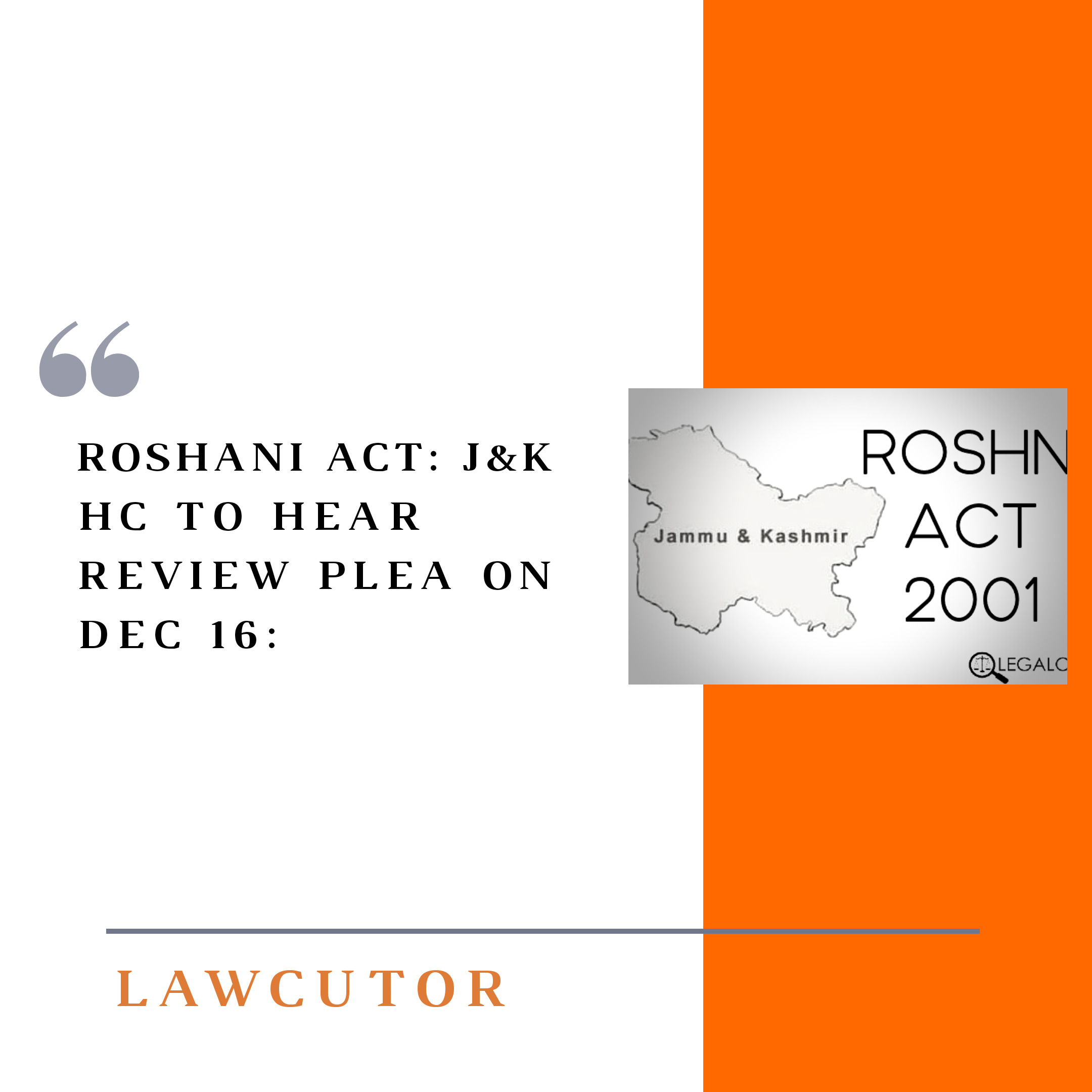 The review petition, filed by the Union Territory administration which seeks to modify the court’s October 9 decision declaring J&K state land act, 2001 “void ab initio” and ordering CBI inquiry in all instances of irregularities in transfer of state land to private individuals, is adjourned to December 16 by J&K High Court.