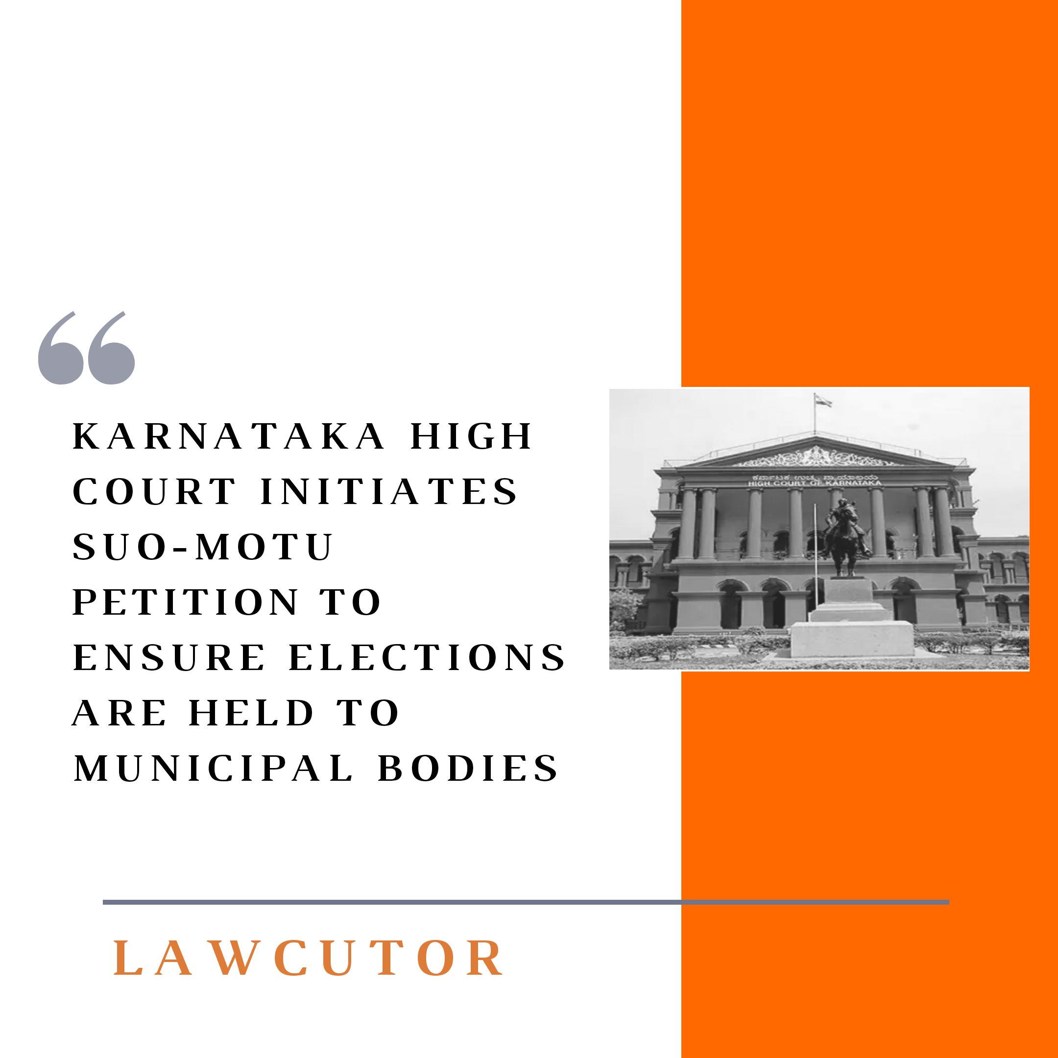A division bench of the Karnataka High Court comprising Chief Justice Abhay Oka and Justice S Vishwajith Shetty on Monday directed the registry to initiate a suo-motu writ petition to issue directions to State Government and the State Election Commission to hold elections to the Municipalities as per the mandate of clause (3) of Article 243U of the Constitution.