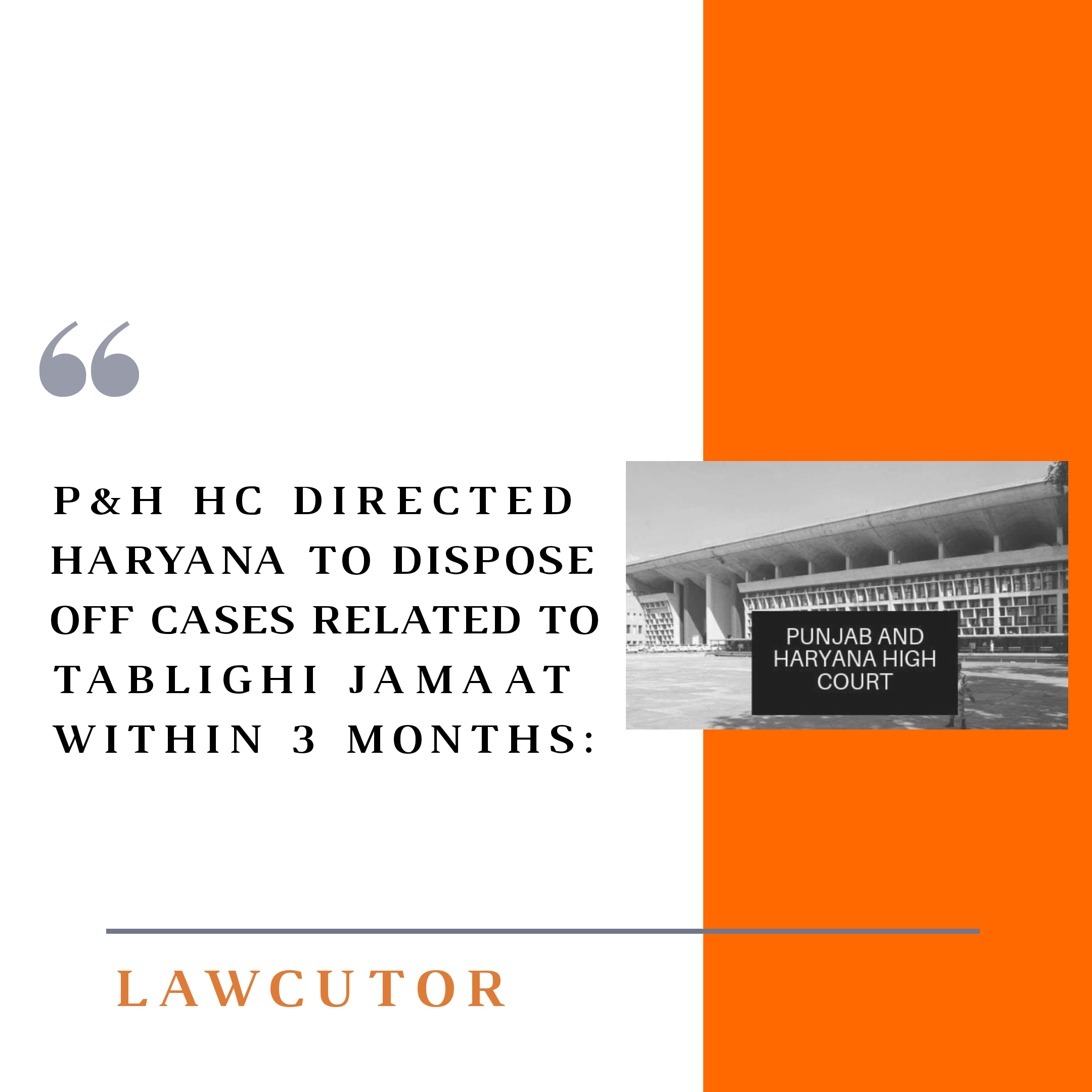 The Haryana Government and all its trial Courts are being directed by the HC to dispose off all the cases related to the Tablighi jamaat within 3 months.