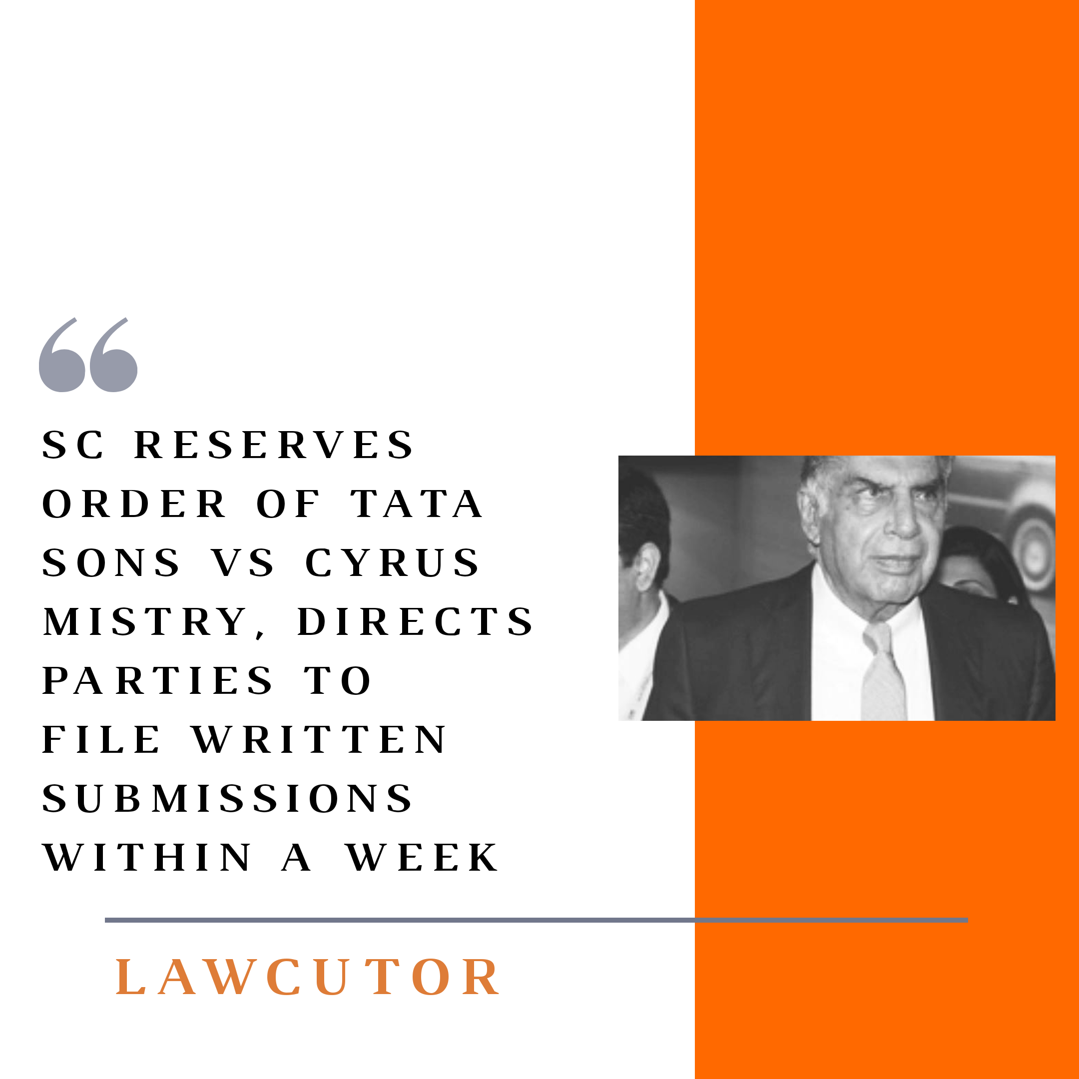 The Supreme Court on Thursday reserved judgment in the cross-appeals filed by Tata Sons and Cyrus Investments against the National Company Law Appellate Tribunal’s (NCLAT) order which had restored Cyrus Mistry as the executive chairman of Tata Group. The bench of Chief Justice S.A. Bobde, Justices V. Ramasubramanian and A.S. Bopanna directed the parties to submit their written notes within a week.