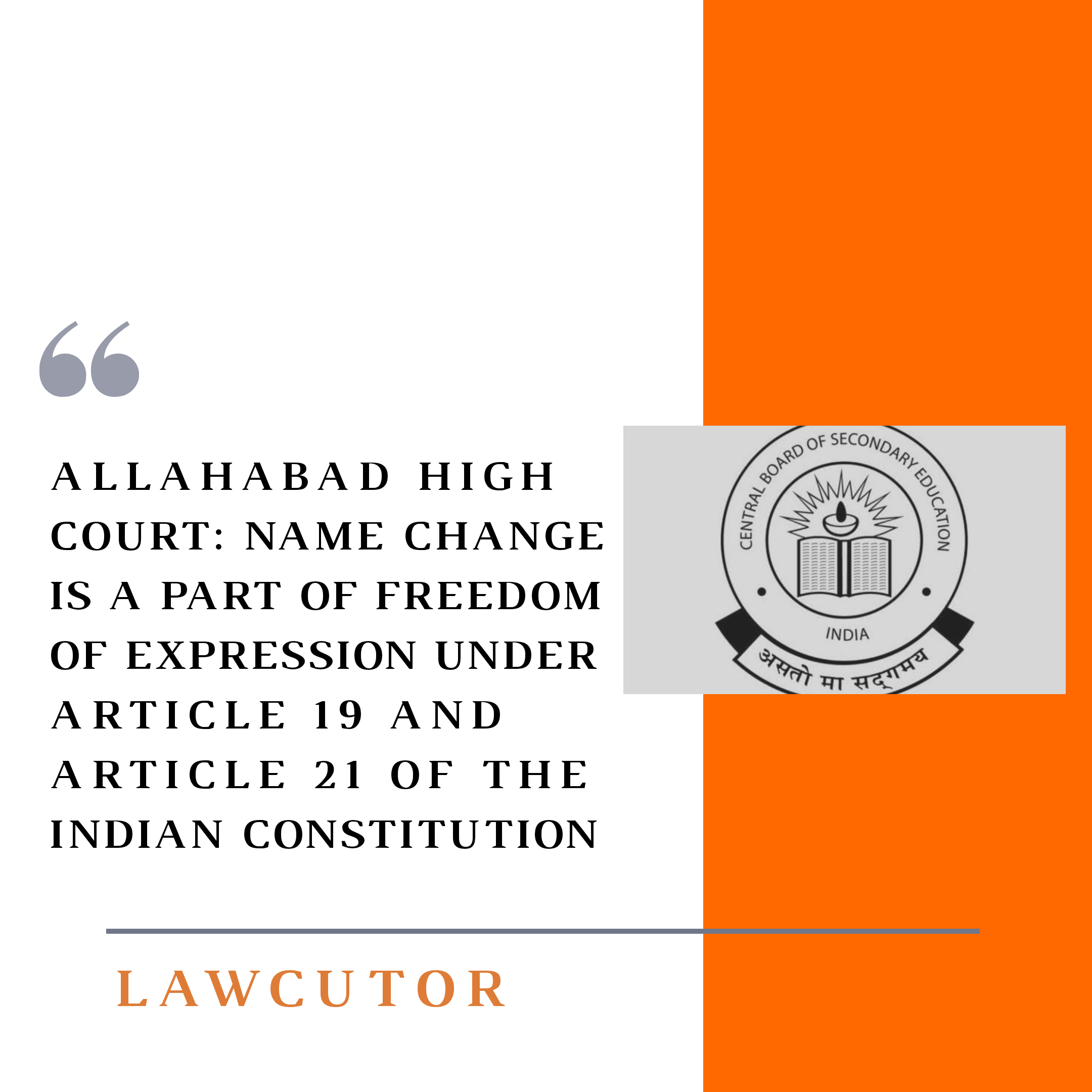 The Allahabad High Court held that freedom of expression under article 19 (1)(a) also covers the right to change of name. A person’s name is his/her right of expression. Article 19 includes all forms of expressions in the world. A name is the strongest expression in the pool of expressions.
