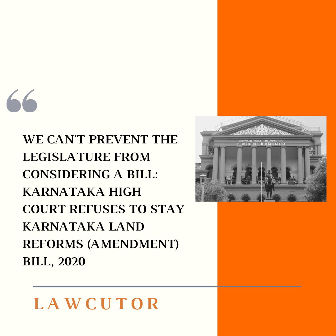 On Tuesday, the Karnataka High Court denied the Karnataka Land Reforms (Amendment) Bill, 2020 [Amendment Bill] to stay.