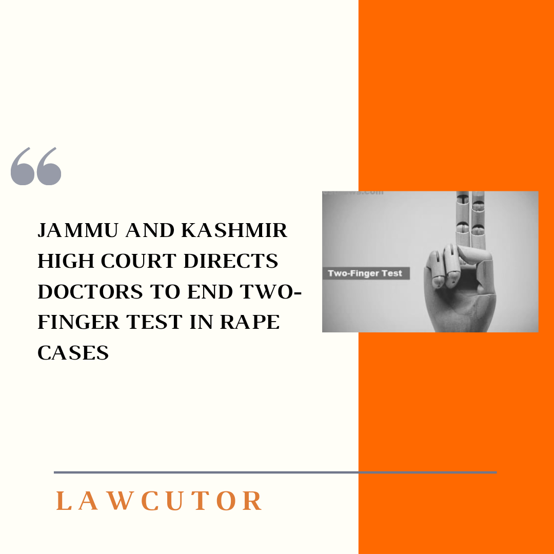 The Jammu and Kashmir High Court has strictly asked health professionals in the Union Territories of Jammu and Kashmir, and Ladakh to stop the practice of two-finger test on rape survivors.