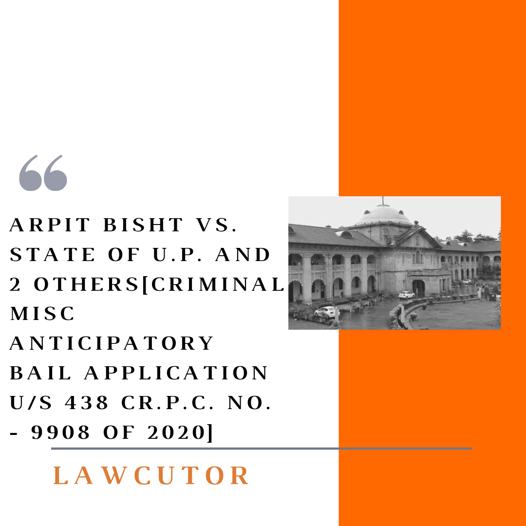 “The applicant, Arpit Bisht, shall be enlarged on interim anticipatory bail in Case Crime No. 1175 of 2020, under Section- 395 I.P.C., Police Station- Noida Sector-20, District- Gautam Budh Nagar, on his furnishing personal bond of Rs. 50,000/- and two sureties each of like amount before the Station House Officer of Police Station/Court concerned with some conditions” ordered by Justice Siddharth who allowed the bail application.The matter is listed to be heard on 21st Jan, 2021.
