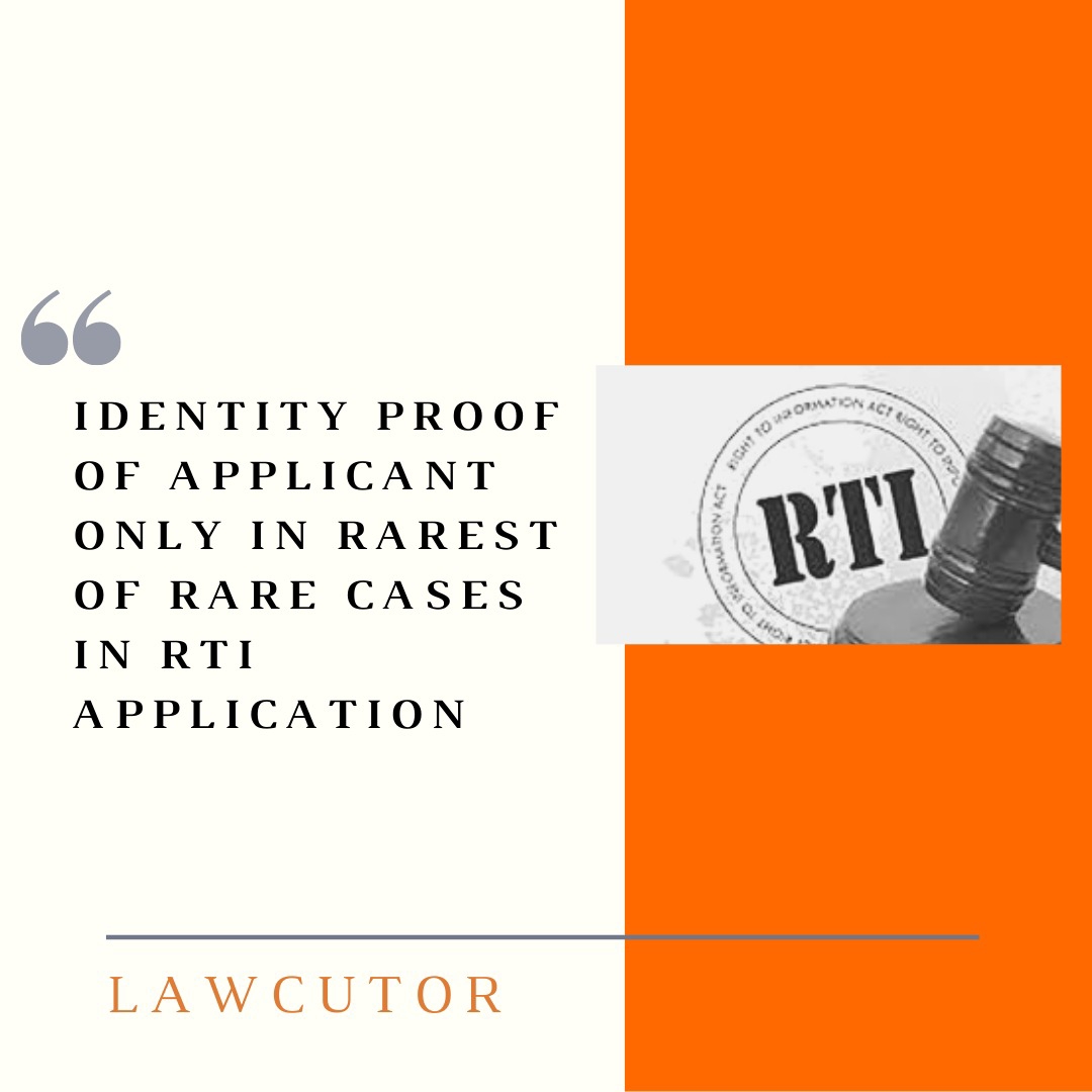 According to an order passed by the Central Information Commission (CIC), lack of identity proof of the RTI Applicant is not a valid ground for the rejection of an RTI Application and the identity proof can be demanded only in rarest of rare cases where there is considerable doubt over the citizenship or nationality of the applicant.