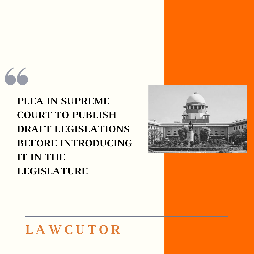 A PIL is filed in the Supreme Court to direct the Centre and states to publish Draft Legislations prominently on government websites and in the public domain, at least 60 days before introducing in the Parliament and State Assemblies.