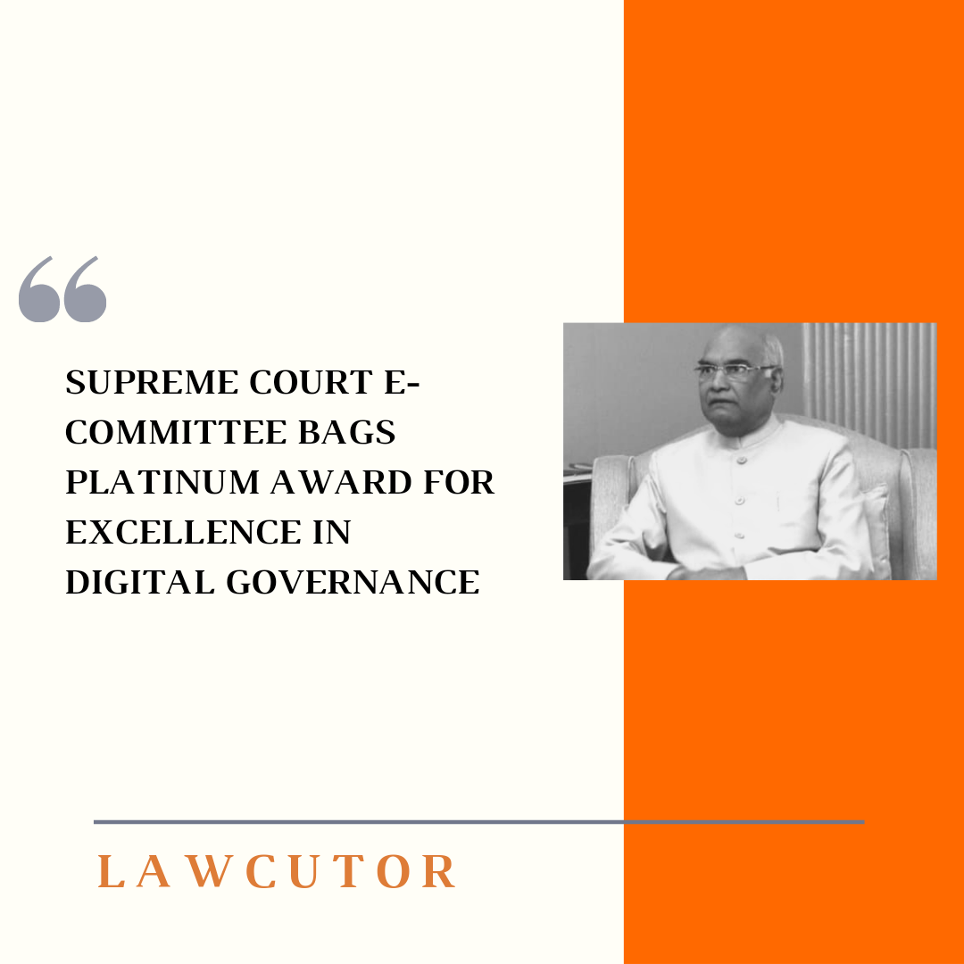 Honourable President of India, Ram Nath Kovind presented the *Platinum* award for Excellence in Digital Governance to the e-committee of the Apex Court of India. The committee was conferred the award during the online Digital India Award presentation ceremony held on December 30.