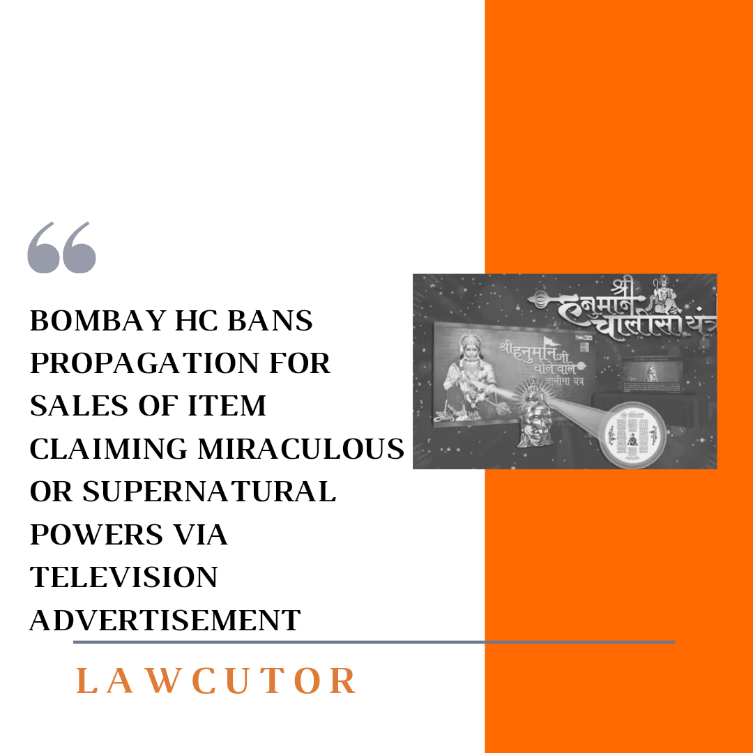 In an important ruling, the Bombay High Court (Aurangabad Bench) on Tuesday (05th January) held that the sale of items, claiming that they possess miraculous or supernatural powers via television advertisement is illegal.The bench of Justice Tanaji Nalawade and Justice Mukund Sewlikar has also held that the TV channel, telecasting such advertisement, would be liable under the provisions of the Maharashtra Prevention and Eradication of Human Sacrifice and other Inhuman, Evil and Aghori Practices and Black Magic Act, 2013.