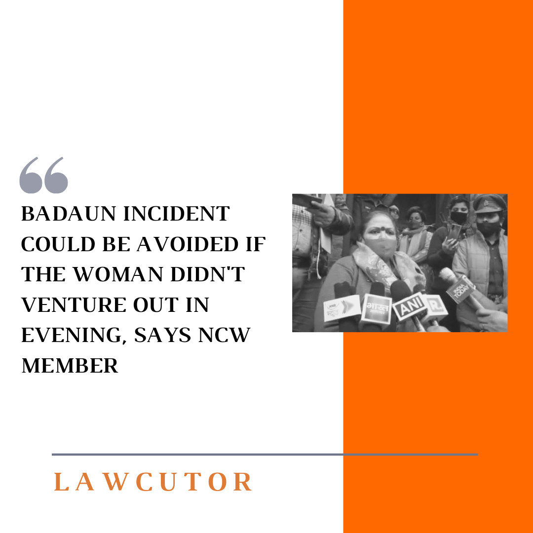 A member of the National Commission for Women has said that the Badaun gangrape case could have been avoided if the woman had not ventured out in the evening.NCW member Chandramukhi was sent by the commission to meet the family members of the Badaun gangrape victim. Speaking to reporters, she said, “Even if she is under pressure from someone, a woman should keep track of time and should not venture out late. I wonder if the victim had not gone out alone in the evening, or gone with a family member, she could have been saved.”