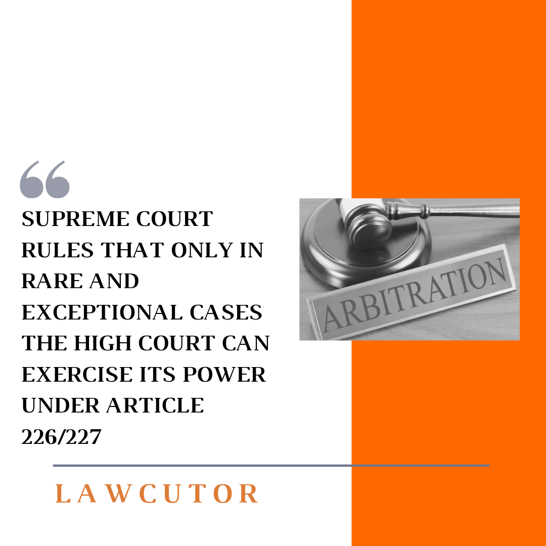 In the case of Bhaven Constructions v. Executive Engineer Sarsar Sarovar Narmada Nigam Ltd., the Supreme Court has observed the power of High Court to interfere with arbitration process under Article 226/227 of the Indian Constitution.