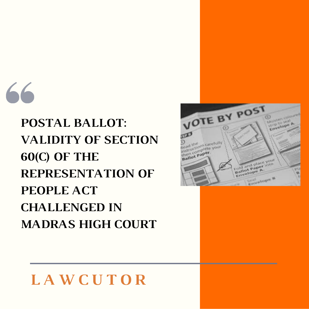 A petition has been filed in the Madras High Court, raising the question over the constitutional validity of Section 60(c) of the Representation of People Act, 1951, which enables the government to prescribe groups of voters who can vote by sending their votes using the postal services.