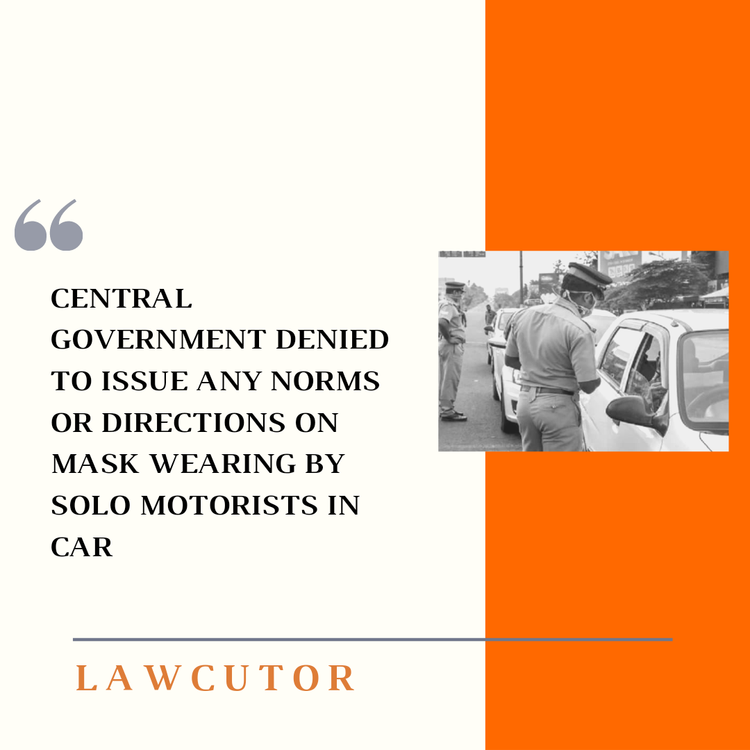 Centre has notified the Delhi HC that it has not issued any guidelines or instructions with regard to one person wearing a mask while driving alone in a car.