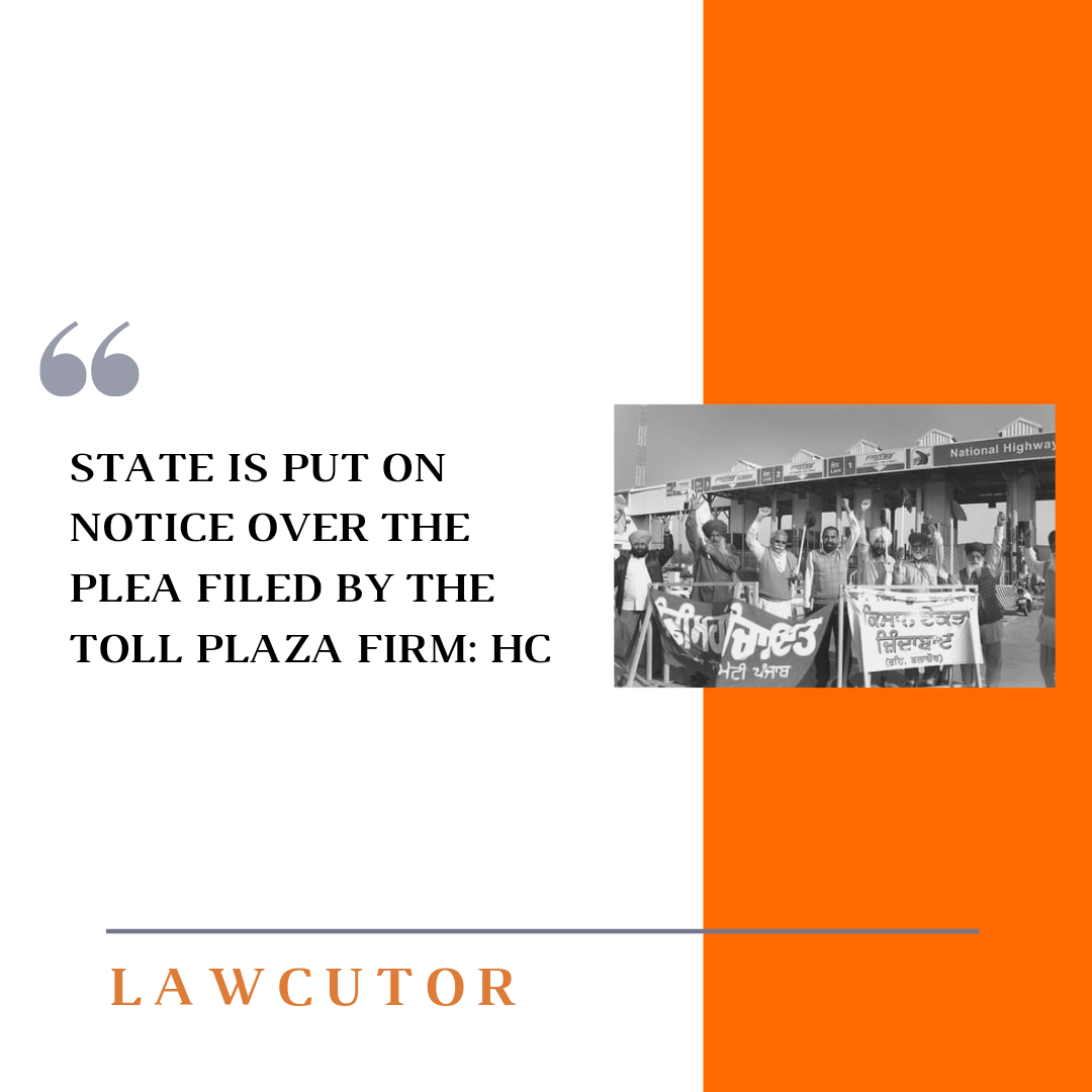 On the petition filed by the concessionary managing Ladowal toll plaza on Panipat-Jalandhar highway, the Punjab and Haryana High Court has issued notice of motion to the State of Punjab and the Union of India.