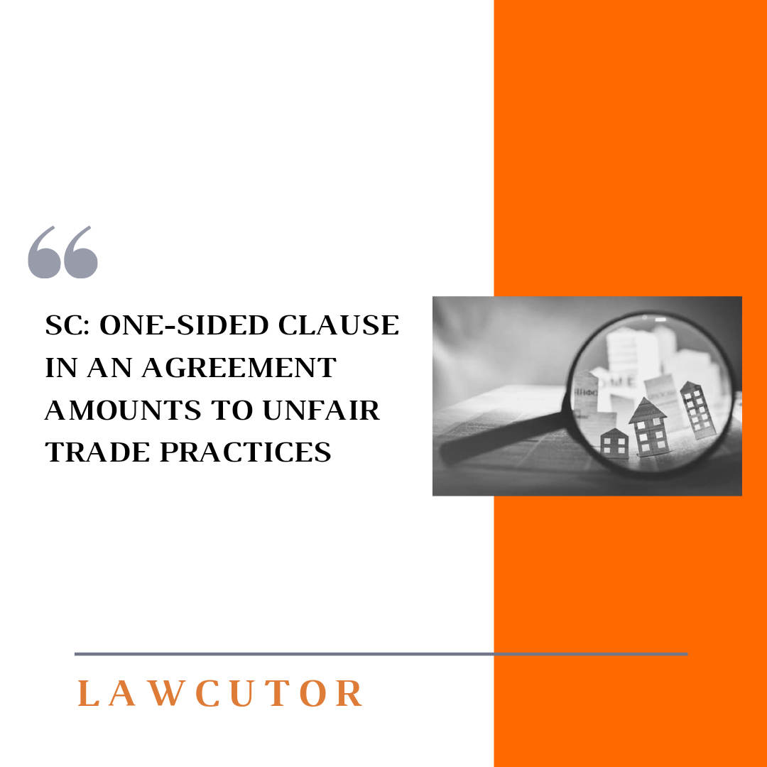 Clause 21.3 provides that upon such termination.Bench comprising Justices DY Chandrachud, Indu Malhotra and Indira Banerjee observed that the Developer cannot compel the apartment buyers to be bound by the one-sided contract.The court held that “We are of the view that the incorporation of such one-sided and unreasonable clauses in the Apartment Buyer‘s Agreement constitutes an unfair trade practice under Section 2(1)(r) of the Consumer Protection Act.”
