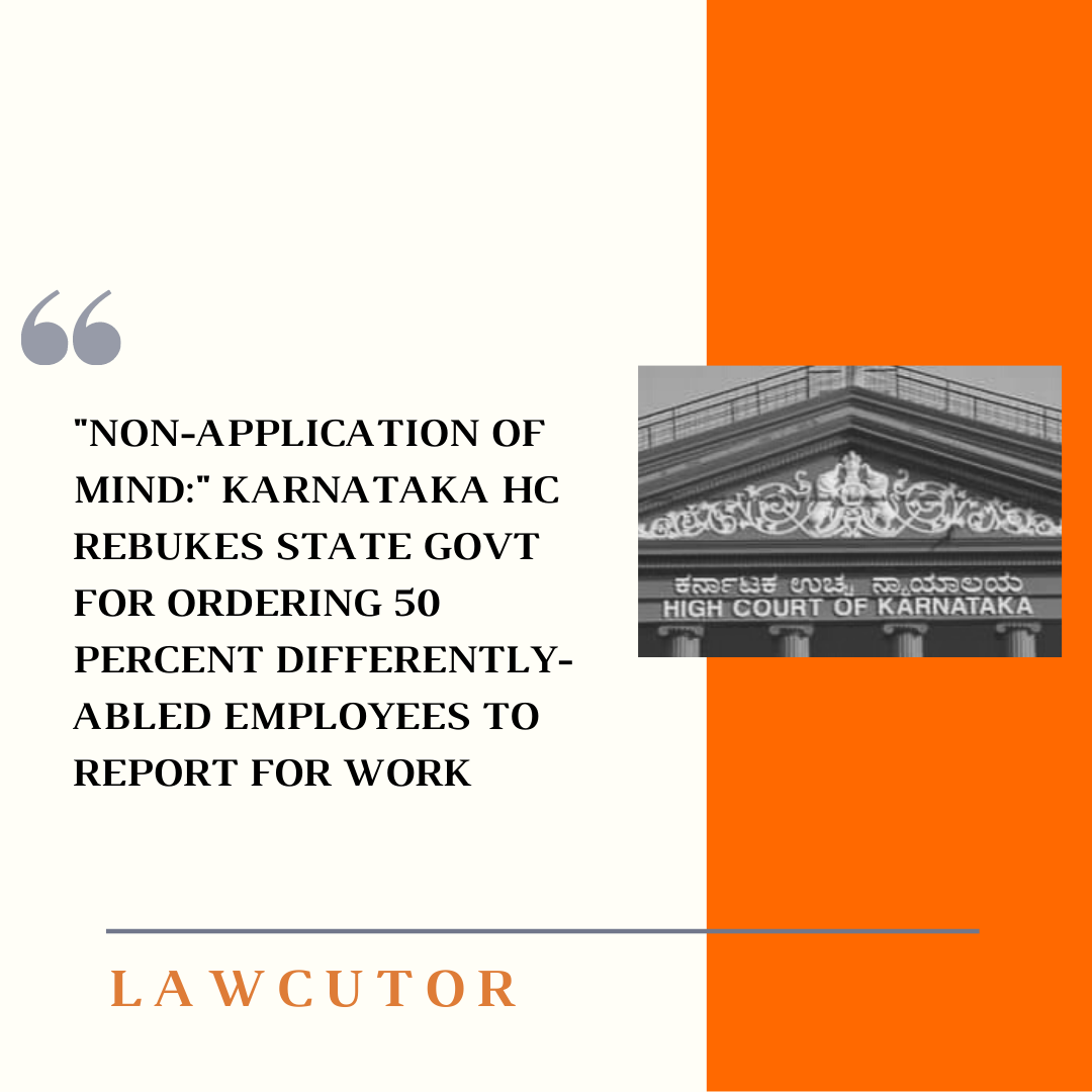 Karnataka HC recently reprimanded the State govt for issuing a circular which made it mandatory that 50 percent of differently-abled government employees should report for work on alternate days.