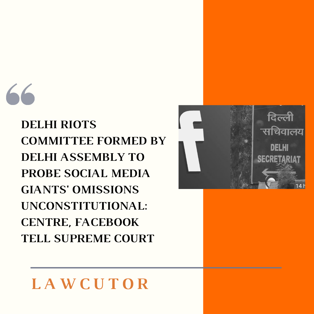 As per Central Government and Facebook, The Peace and Harmony Committee constituted by the Delhi Legislative Assembly to probe the Delhi riots of February 2020 is unconstitutional.