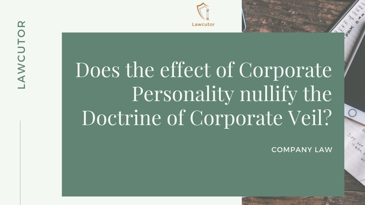 Corporate Personality is basically the Legal character of the company separate from the members of the company and Corporate Veil is a legal concept that separates the actions of an organization to the actions of the shareholder. Also, it protects them from being liable for the company’s actions.