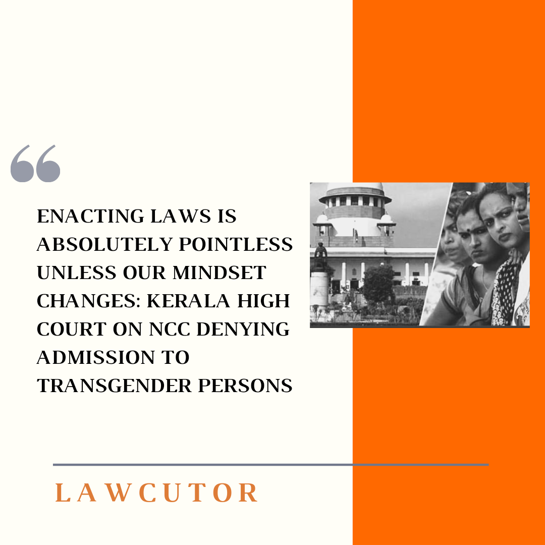 He further said that NCC does not need to make any changes to accommodate the petitioner and the petitioner can be admitted as “female” since she has identified herself as female and the NALSA judgment recognises self-perceived gender identity.