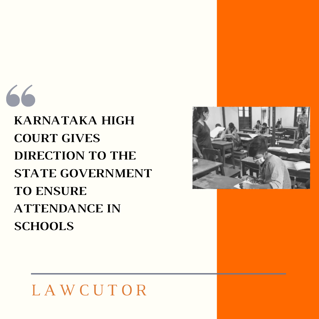 The Karnataka High Court gave directions to the state government to ensure attendance of students in school. They observed that the country will not progress without education, so there should be no discontinuation of education.