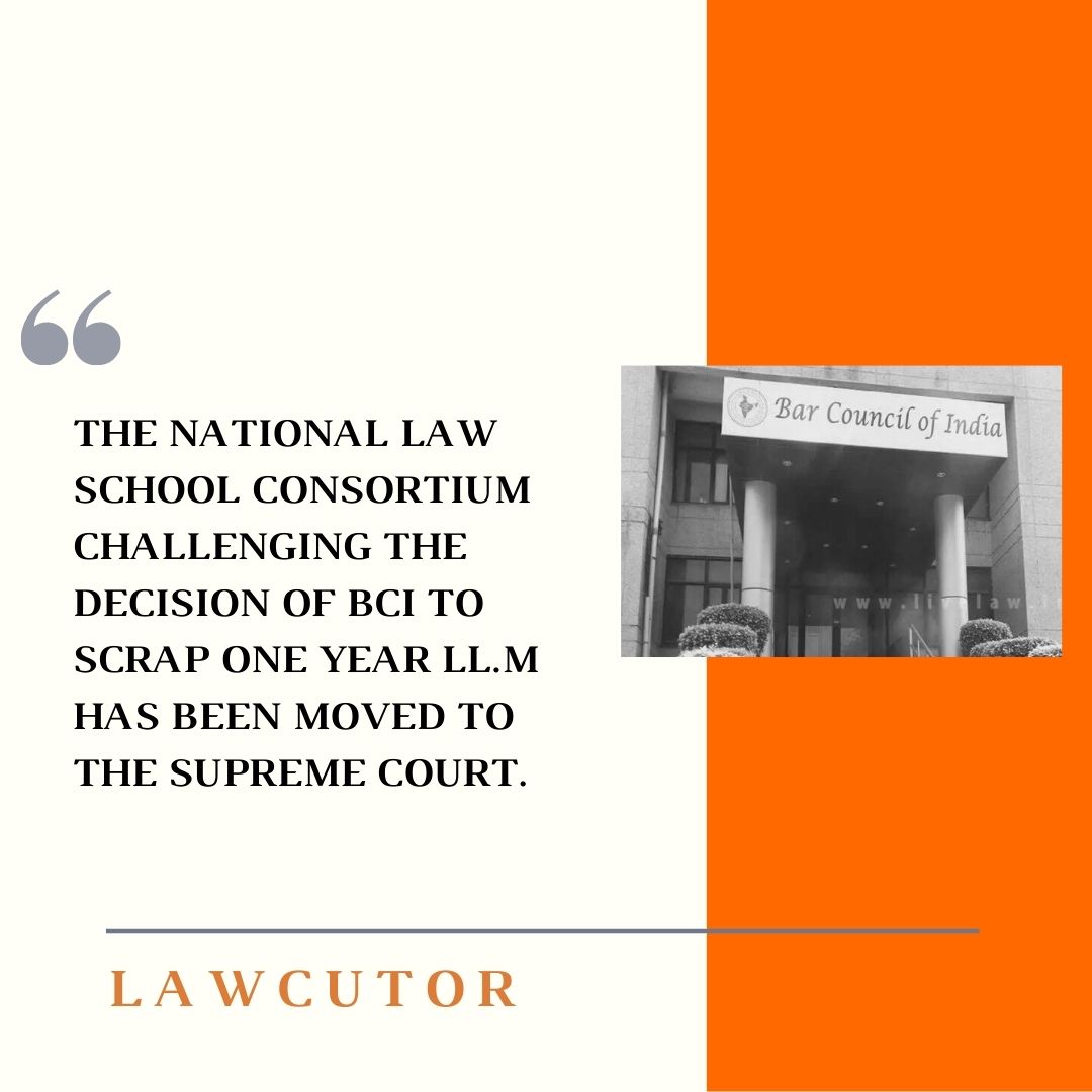 The decision of the Bar Council of India regarding the one year LL.M has been challenged by two individuals already. Now, a consortium of National Law Universities have been moved to the Supreme Court against this contentious decision to scrap the one year LL.M course. Also, the BCI decision derecognizes the foreign LL.M. The bench has been adjourned the matter for interim relief.