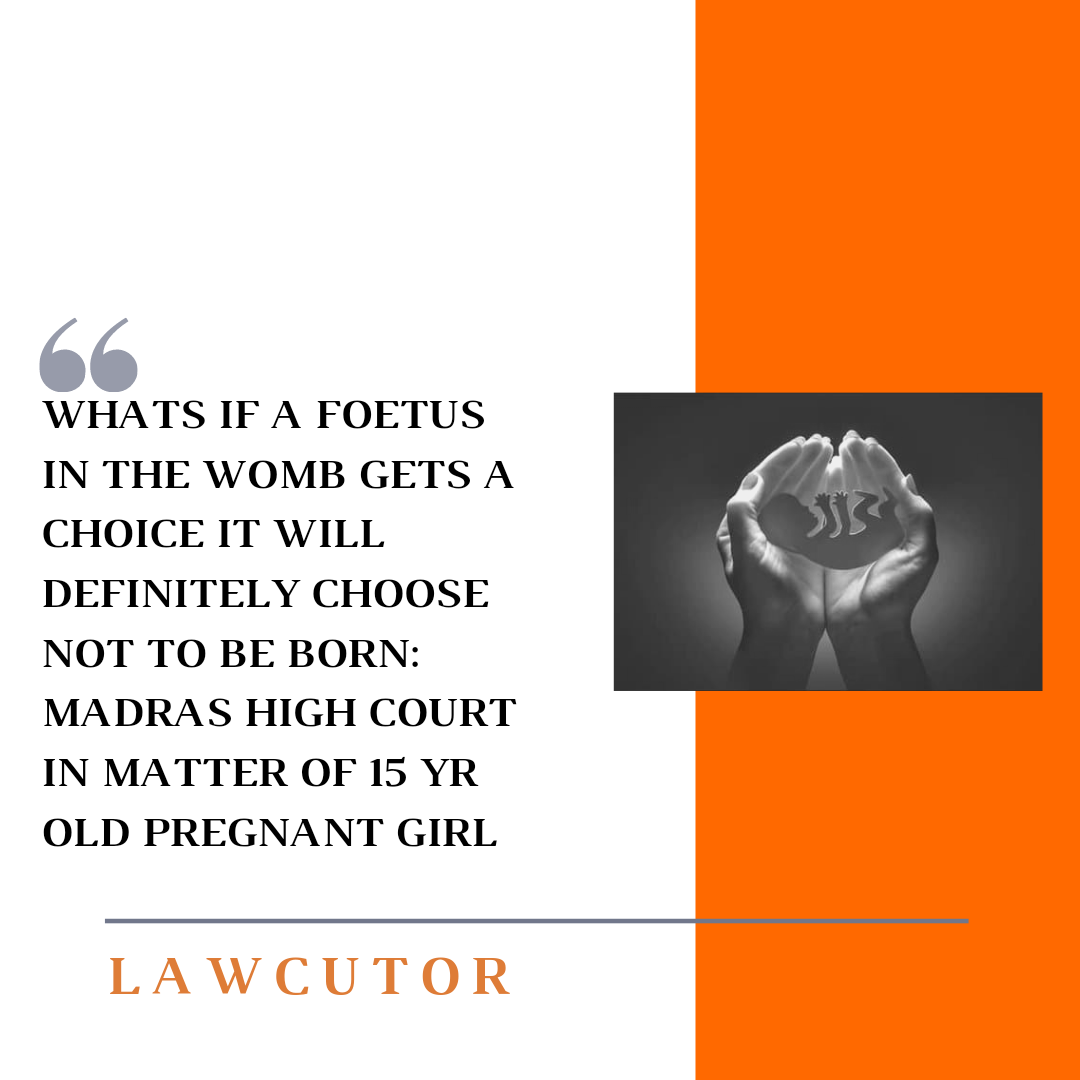 Madras High Court (Madurai Bench) hearing the petitioner’s minor niece, namely J, D/o.Late Kaaliappan, aged about 15 within the time frame fixed by this Court, said if a foetus in the womb is given a choice it will definitely choose not to be born.It was alleged that the 15 years girl was kidnapped and established physical intimacy with J several times and since J had become pregnant, the petitioner approached the Court to direct the official respondents to terminate her pregnancy.