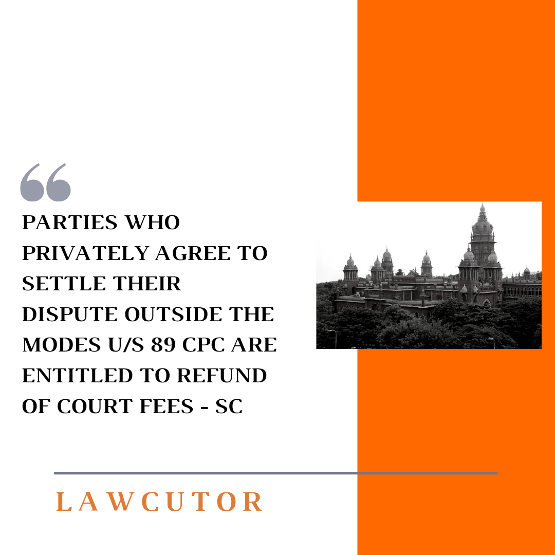 In High Court of Judicature at Madras vs. M.C. Subramaniam [SLP (CIVIL) NOS. 30633064 OF 2021], SC held that the parties who privately agree to settle their dispute outside the modes contemplated under Section 89 of the Code of Civil Procedure are also entitled to refund of Court fees.