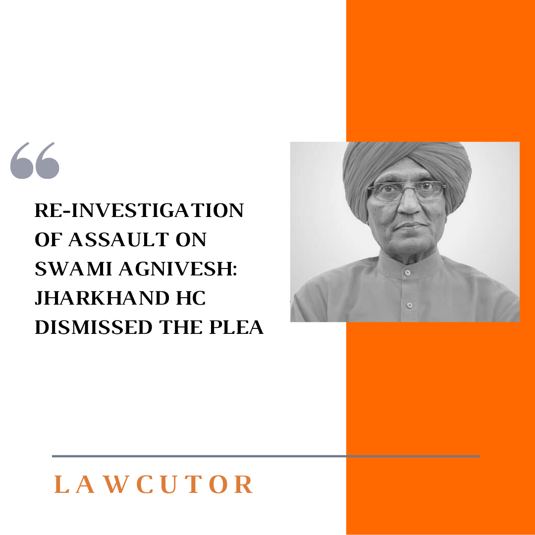 The de facto petitioner, Jai Malto, and Swami Agnivesh filed the present written petition seeking re-investigation in a case related to an assault on social activist late swami agnivesh, in pakur district of Jharkhand in 2018, was dismissed by the Jharkhand high court.