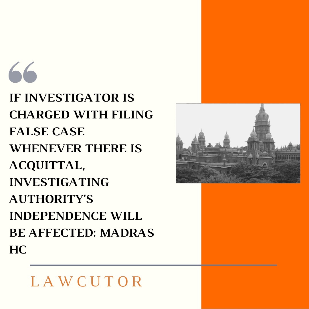 Recently, the Madras High Court had the opportunity to note that the independence of the investigating officer would be jeopardized, if the defendant is acquitted, the investigating officer will be charged with allegations of filing false charges under Section 211 of the IPC.
