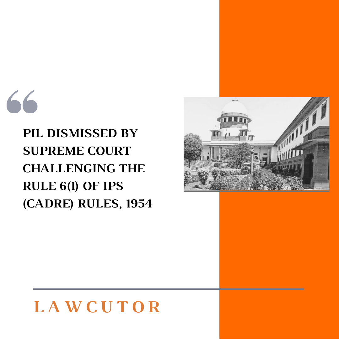 Supreme Court dismissed a PIL filed by Abu Sohel, West Bengal lawyer which challenged Rule 6(1) Indian Police Service ( Cadre) Rules, 1954 which gives centre an overriding power over state in matter of transfer of IPS cadre.
