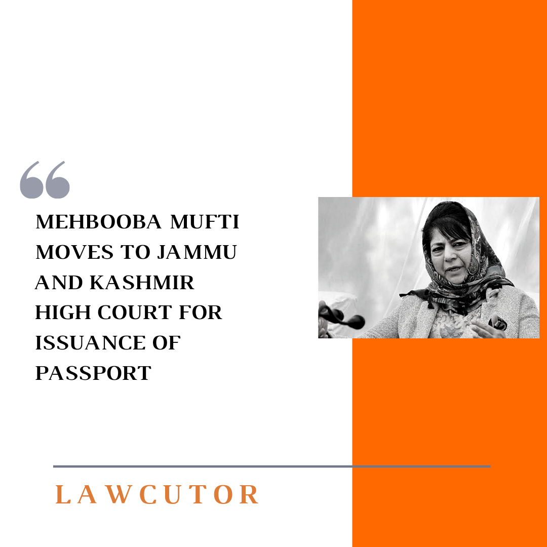 Former Jammu and Kashmir chief minister and president of people’s Democratic Party mehbooba mufti has moved to Jammu and Kashmir high court seeking directions to government and police authorities to issue passport.