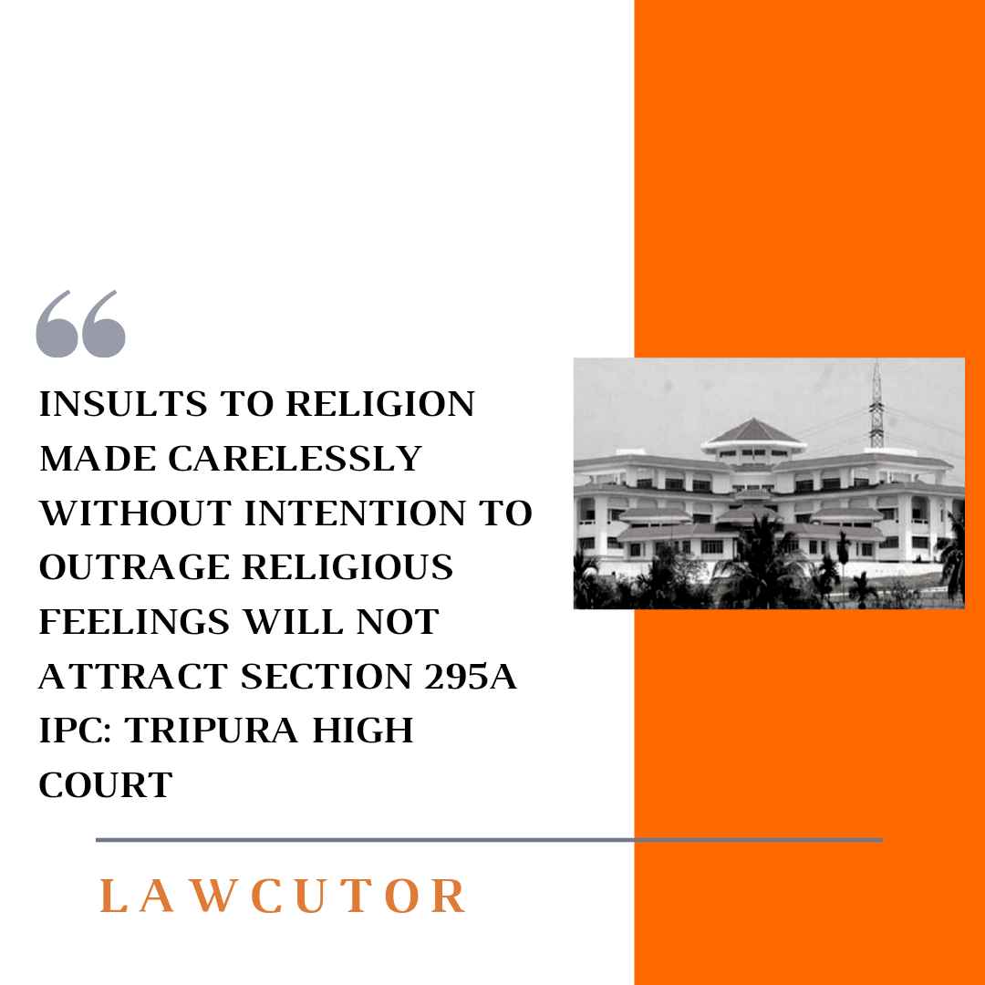The Tripura High Court in a recent order observed that insults to religion made unwittingly or carelessly without any deliberate or malicious intention to outrage the religious feelings of a class would not attract Section 295A of the Indian Penal Code.