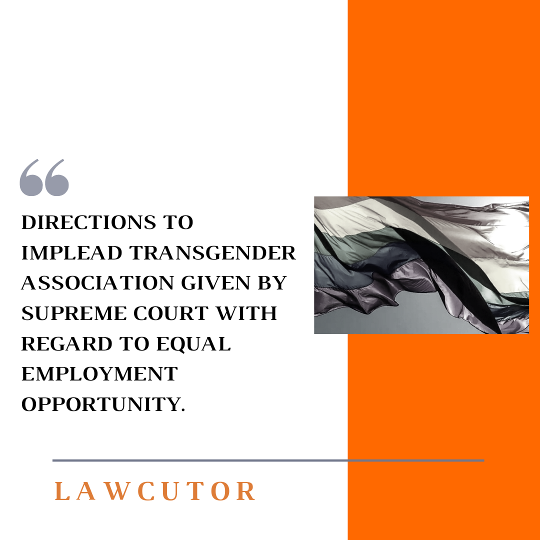 On 12th March, the Supreme Court gave directions to implead the transgender associations within 2 weeks. The bench consisted of CJI SA Bobde and Justice Bopanna. The petition was seeking equal employment opportunity.