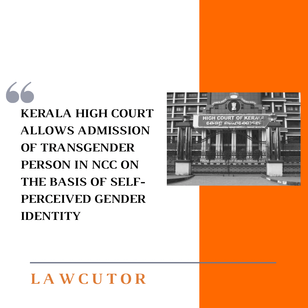 The Kerala High Court recently ruled that a Transgender person is entitled to be admitted to National Cadet Corps (NCC) in accordance with her self-perceived gender identity.