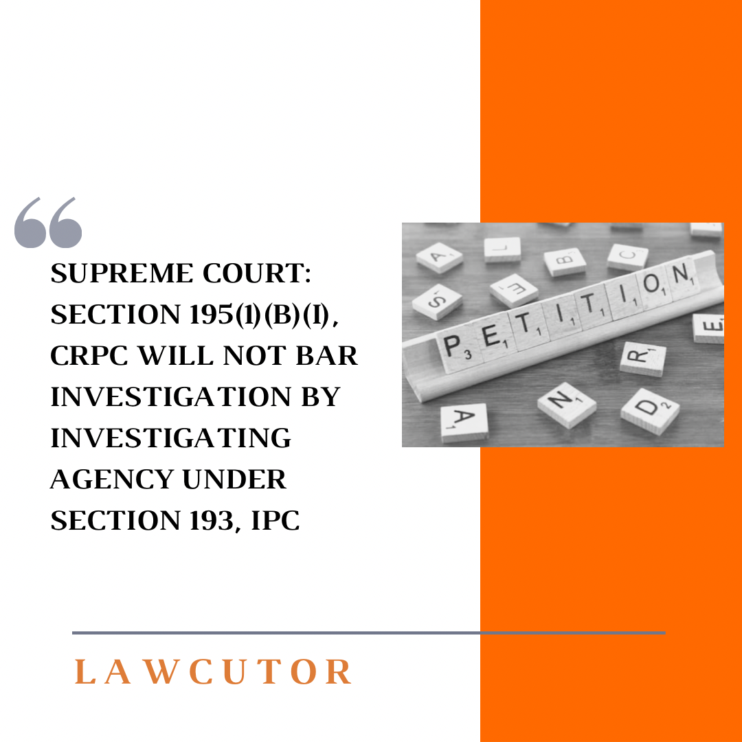 The court in the matter observed that bar under Section 195(1)(b) is applied to an offence committed, the investigating agency has a separate right to proceed against the accused for attempting to obstruct fair and transparent probe into a criminal offence. It would be impracticable to insist upon lodging of written complaint by the Court under Section 195(1)(b)(i), CrPC in such a situation.