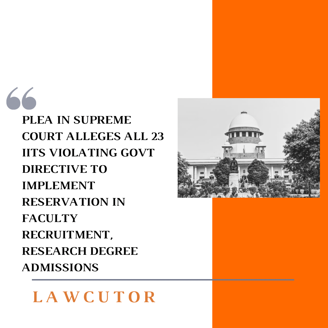 A plea has been filed before the Supreme Court alleging that all 23 Indian Institutes of Technology (IIT) are violating reservation policy that provides reservation to Scheduled Caste, Scheduled Tribe communities and Other Backward Castes in granting admission to research degree programs and recruitment of faculty.