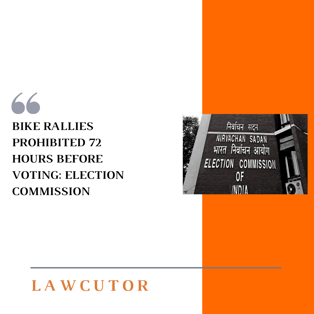 The Election Commission said, ” After considering the report, the commission has decided that bike rallies will not be allowed at any place 72 hours before date of poll or on the poll day in all poll going constituencies.”