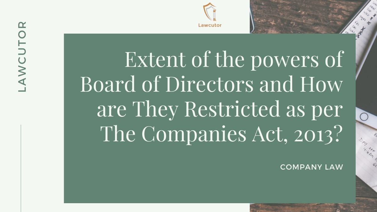 This article shall explain the extent of the powers of the Board of Directors under the Companies Act, 2013. As the Board is the highest panel of executives on a company, it is necessary to impose certain restrictions on it, as the Board represents the company and its shareholders. This article will also explain the restrictions imposed on the Board by the Act, though the Act itself, and the Shareholders also placing these said restrictions on them.