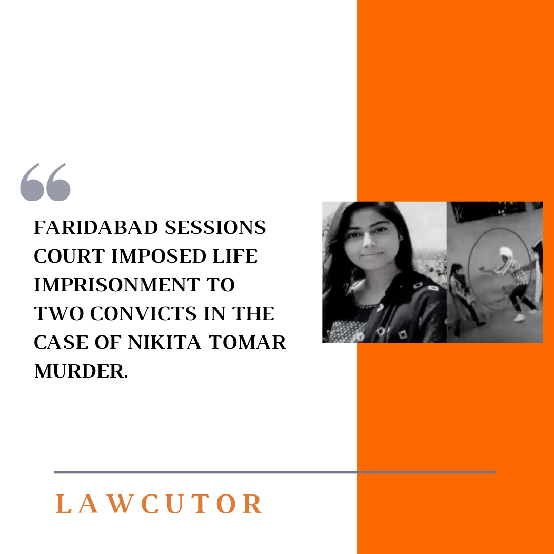 A Sessions court of Faridabad imposed life imprisonment to two convicts in the Nikita Tomar murder case. The two convicts namely Tausif and Reehan.