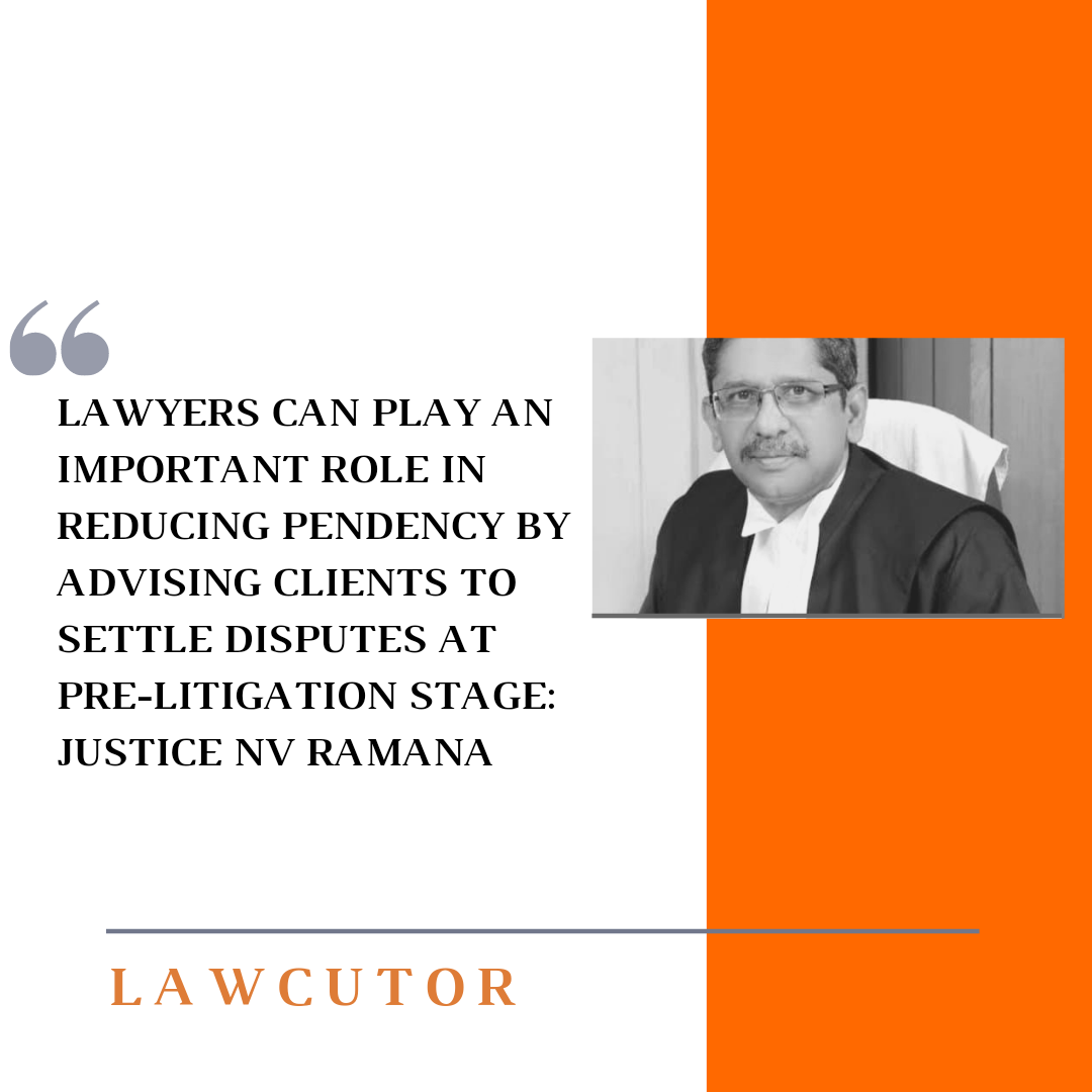 The Supreme Court Judge Justice NV Ramana opined at a convocation ceremony of the Damodaram Sanjivayya National Law University (DSNLU), Vishakapatnam that lawyers can play a major role in reducing the pendency of cases by advising their clients to settle their disputes at the pre-litigation stage itself.