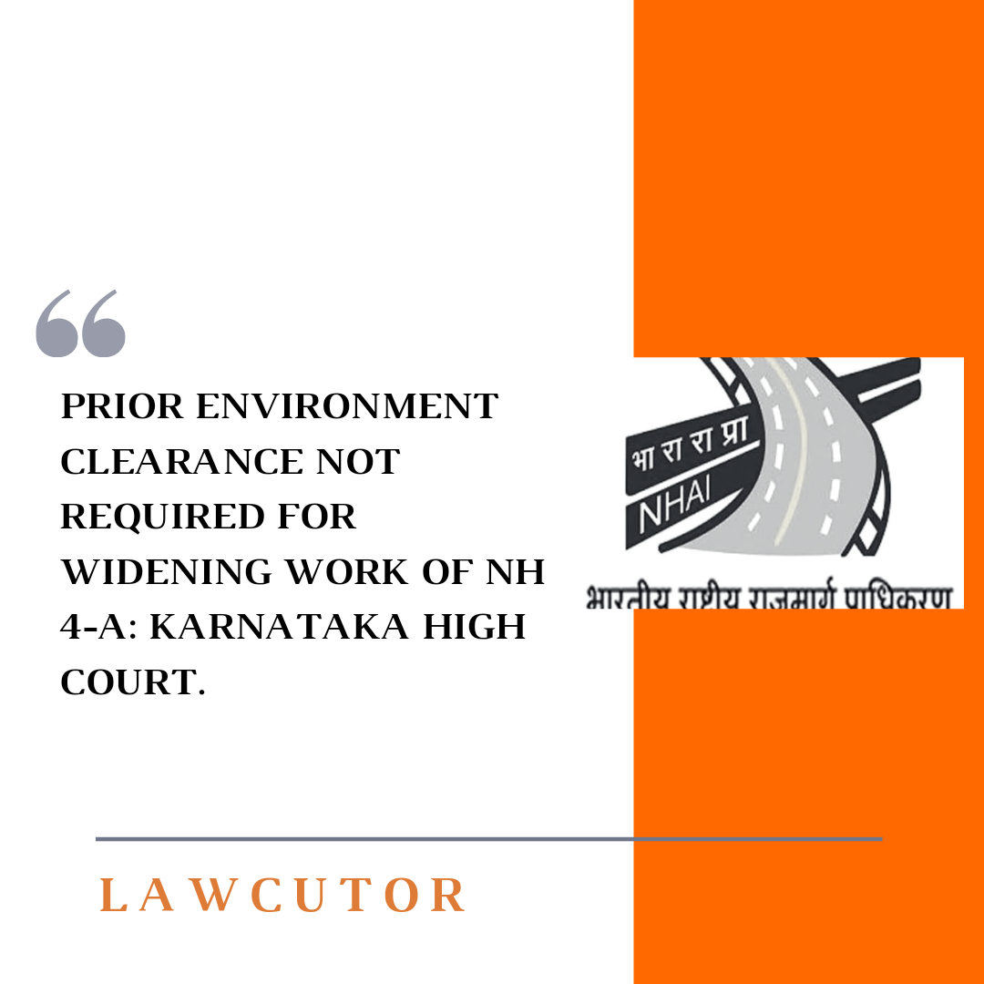 The petition was filed by actor and environmentalist Suresh Heblikar.The bench while disposing the petition said that it is not necessary for the third respondent (NHAI) for obtaining prior environmental clearance.