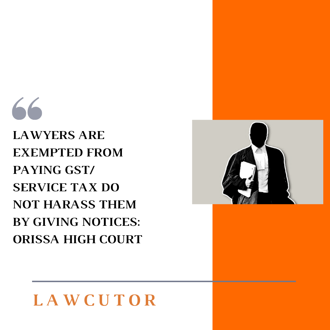 Court has also express concern that lawyer should not face any kind of harassment on department issuing notices and calling them to pay GST/ service tax when they are exempted.The court has taken into consideration a writ petition filed by lawyer Devi Prasad Tripathy challenging a notice issued to him.